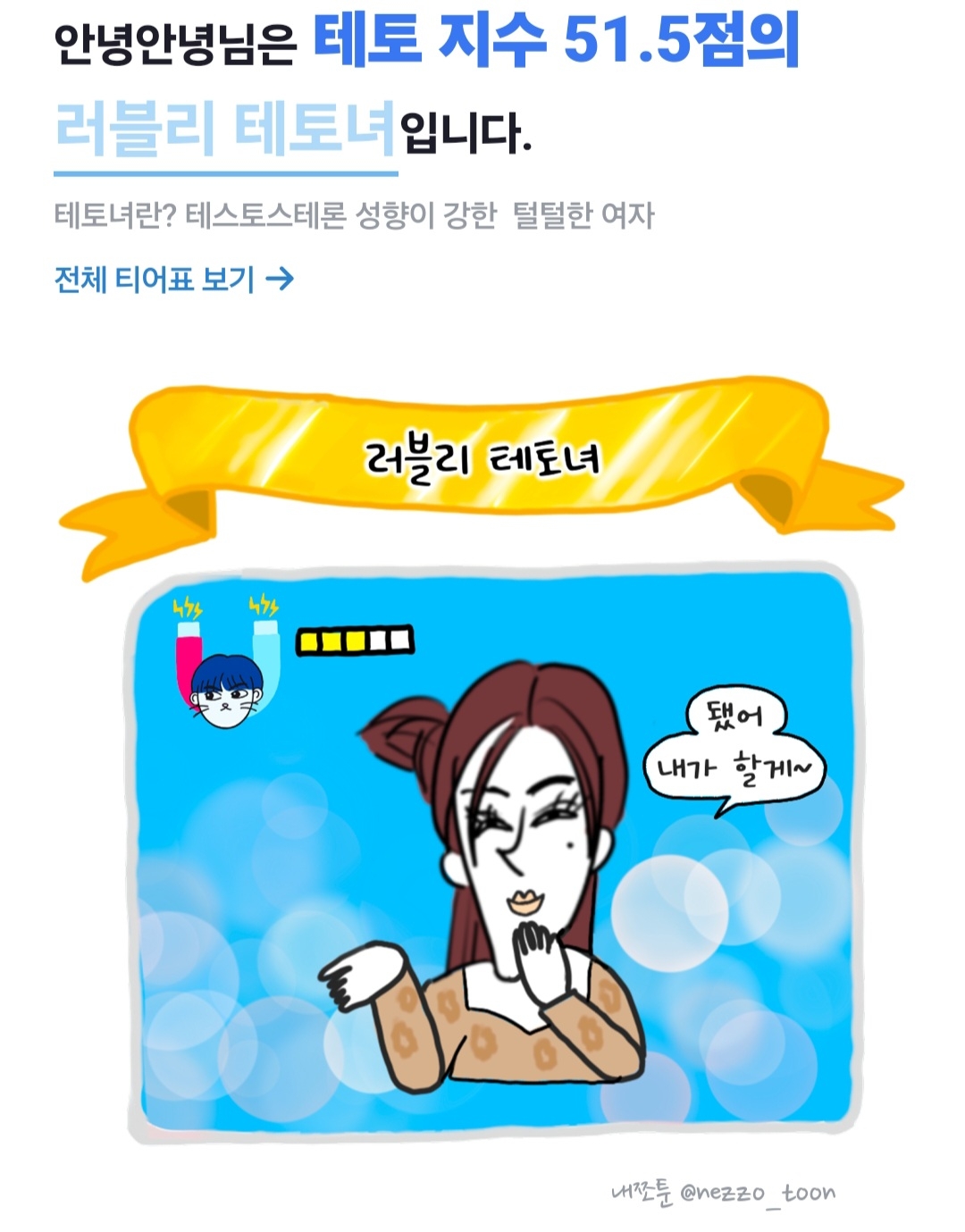 - ✔ “나 테스트 했는데 테토녀 나옴!”