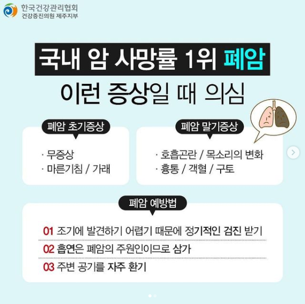 그리고 최소한은 검진이라도 국가에서 해주는 저희가 국가검진이 아주 잘 돼 있다고 하는데, 엑스레이나 저소량 시티 같은 그런 국가검진이라도 꾸준하게 이제 잘 챙겨서 잘 받으시고 어떠한 호흡기 증세가 있을 때 빨리 전문가와 만나서 필요한 검사들을 협의하시는 것이 좋을듯 동등합니다