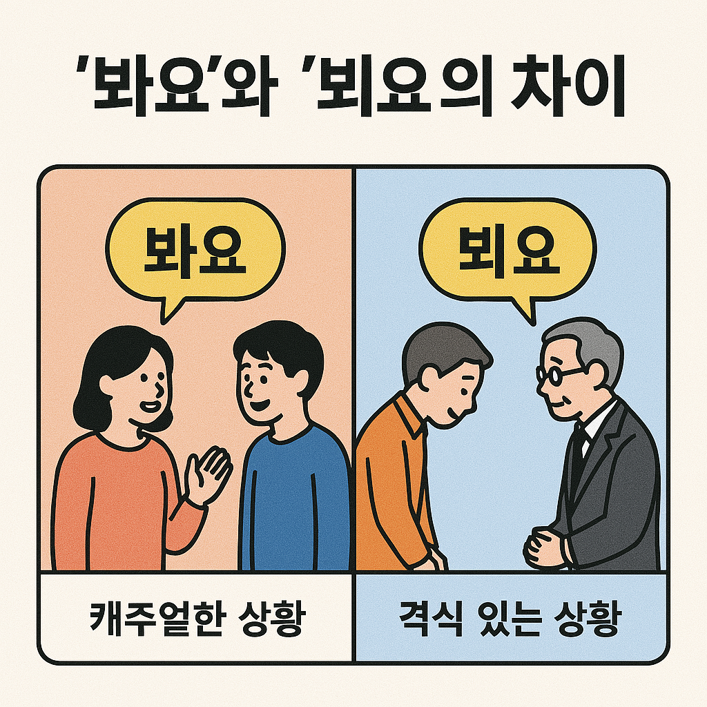 안녕하세요, 여러분. 오늘은 한국어에서 자주 사용되는 두 표현, '봐요'와 '뵈요'에 대해 자세히 알아보려고 합니다.