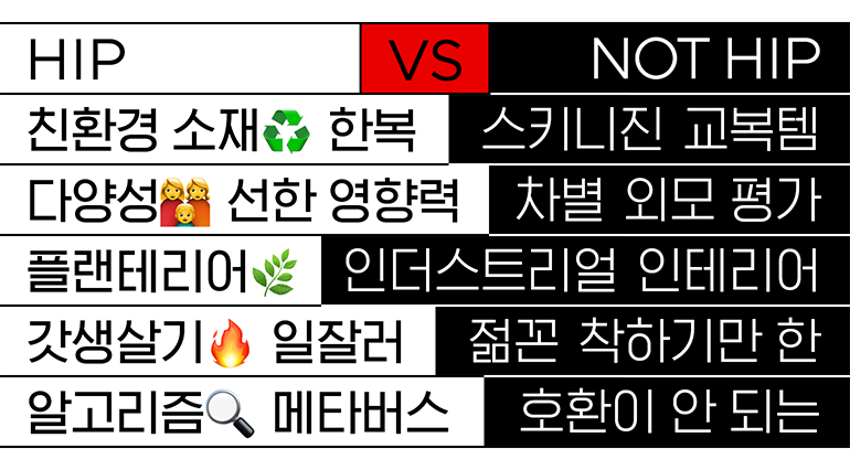 이번에는 요즘 MZ세대 사이에서 자주 들리는 **‘힙하다’**라는 표현에 대해 알아보려고 합니다.